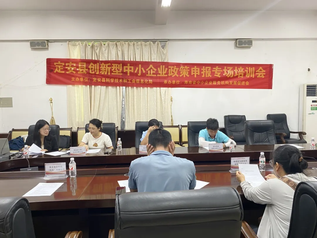 6月27日上午,由定安县科学技术和工业信息化局主办、海南省中小企业服务机构发展促进会(以下简称“海南中小企业促进会”)承办的“创新型中小企业政策申报专场培训会”活动在定安县人民政府北楼龙河厅会议室成功举办。